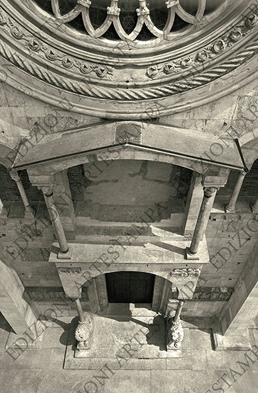 Protiro del portale maggiore del Duomo di Modena ripreso dall’alto.